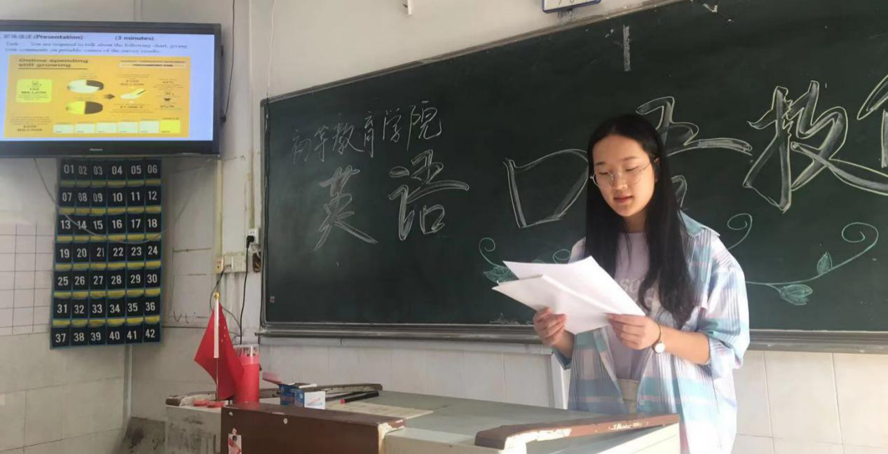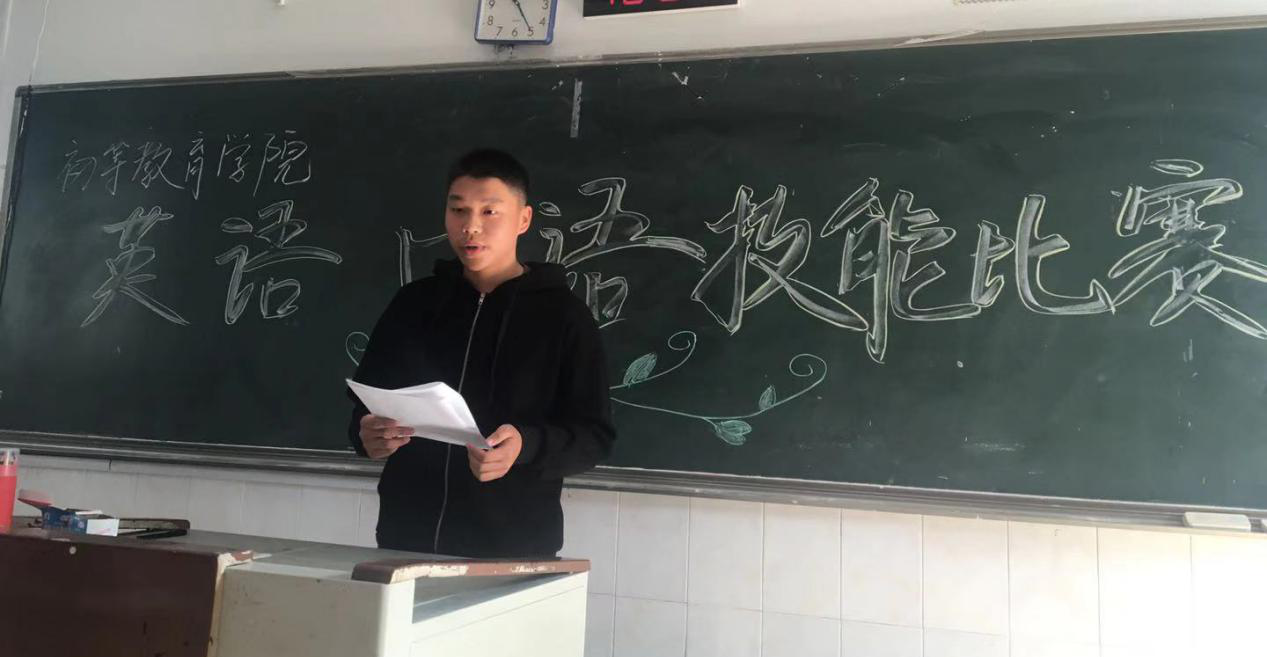 为提高全院学生的英语学习兴趣,展示英语学习成果,初等教育学院英语教育系于 10月 19日上午举行英语口语技能比赛。来自英语、语文、数学三个专业10个班级的16名同学参加了比赛。经过“职场描述(Presentation)”和“情景交流(Interview)”两个环节的角逐,英语(专)18班吴彩蝶、王嘉薇、语文(本)19班时婉圆3位同学分获专业组与非专业组一等奖,英语专19(1)班罗雅雯等5位同学获二等奖,数学(专)18(2)班曹佳敏等8位同学获三等获。胡晓红、万文君、王燕、丛明明、夏盛五位老师担任评委。英语(专)18班全体同学观摩比赛。