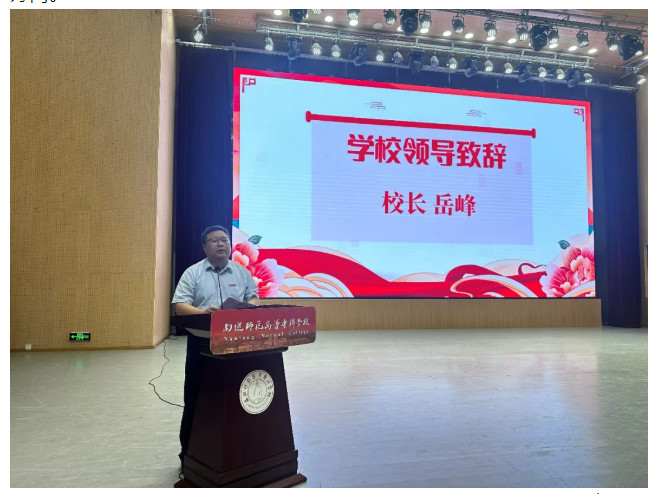 校长岳峰致辞,在对新生表示热烈欢迎后,他介绍了学校、学院的悠久历史和光辉成绩,为新同学送上祝福与嘱托。岳校⻓情真意切的致辞,⼀字⼀句饱含着对同学们的殷切期望,为同学们的成⻓之路点亮了前⾏的⽅向。