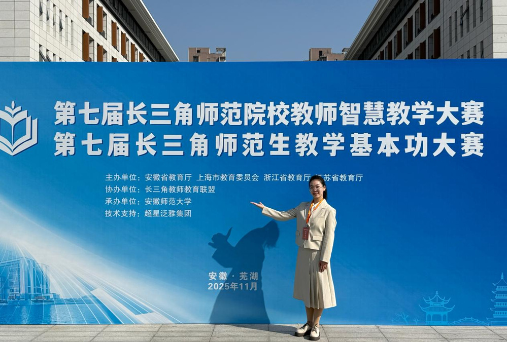 11月15-16日,由安徽省教育厅、江苏省教育厅、浙江省教育厅、上海市教育委员会联合主办的第七届长三角师范生教学基本功大赛在安徽芜湖举行。初等教育学院邱甜、刘杨羽两位同学代表江苏赛区参加小学组比赛,与来自华东师范大学、南京师范大学等长三角地区著名高校学生同台竞技。经过激烈角逐,邱甜同学以优异表现斩获一等奖(小学语文方向第一名),刘杨羽同学荣获二等奖(小学英语方向第二名),充分展现了我院师范生的教学实力与专业素养。