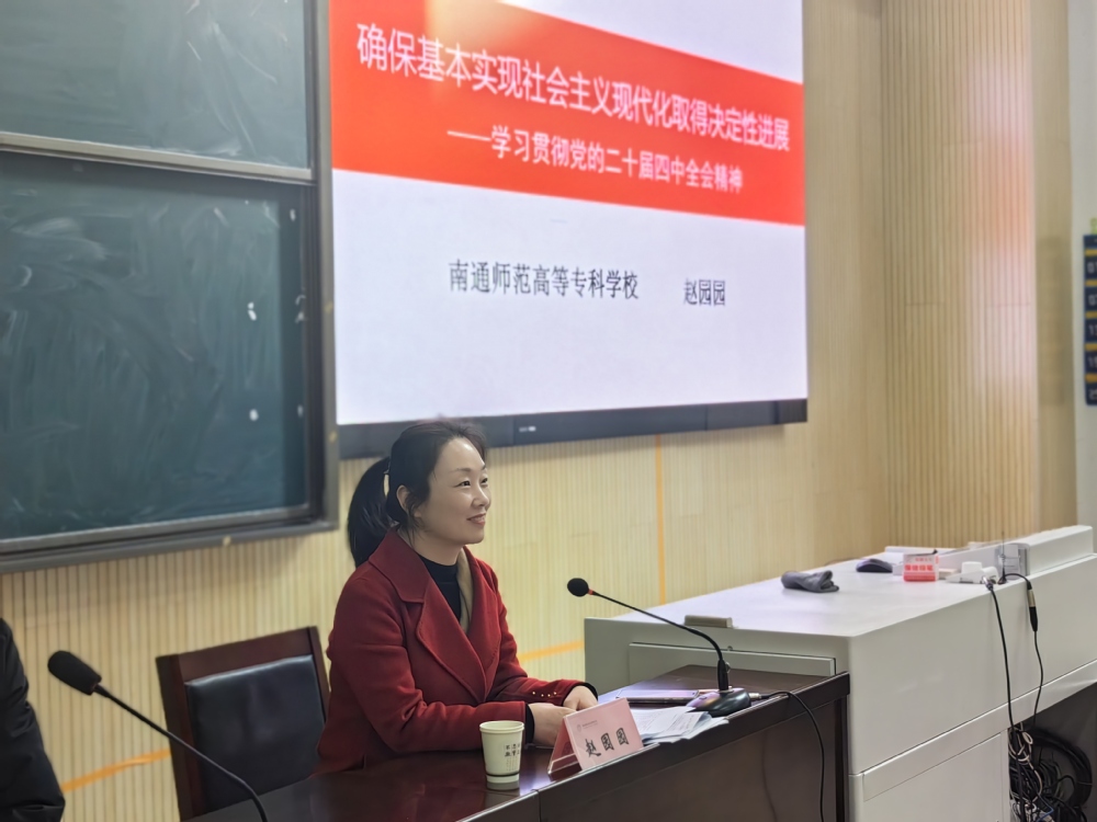 报告会上,赵园园教授紧扣党的二十届四中全会精神,围绕全会审议通过的《中共中央关于校、学院师范教育的特色与使命,就“十五五”时期对我国基本实现社会主义现代化进程的深远意义、发展环境的深刻变化、经济社会发展的战略任务等内容,进行了生动的阐述与分析。